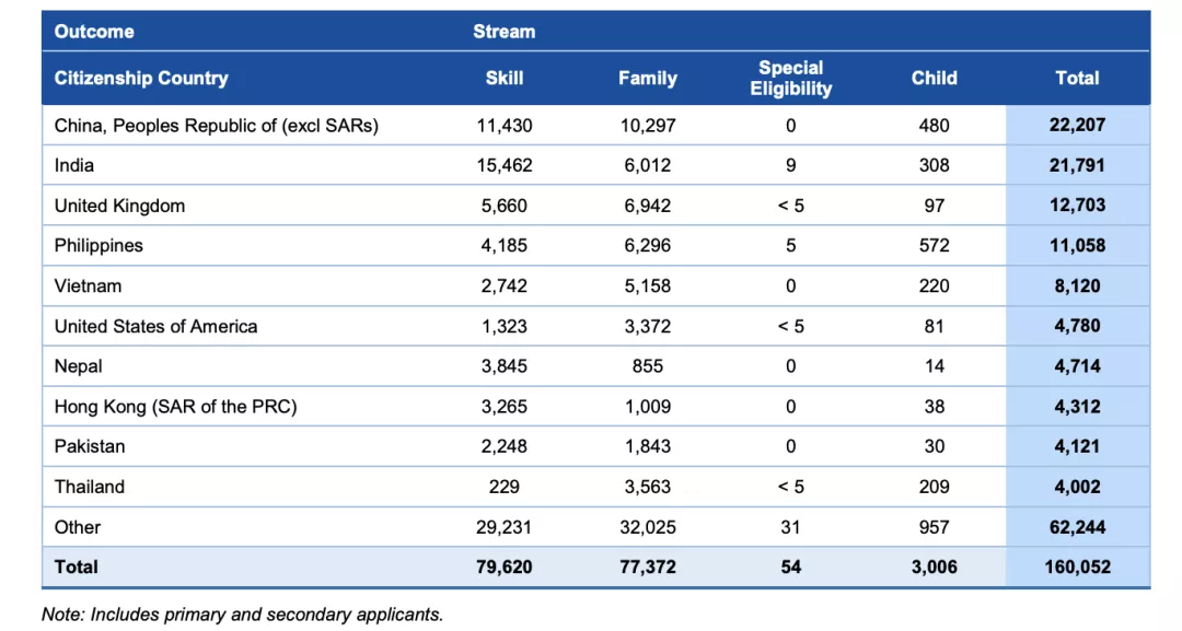 2020-21財年,中國大陸新移民的數量最多,成為澳大利亞第一移民來源國。