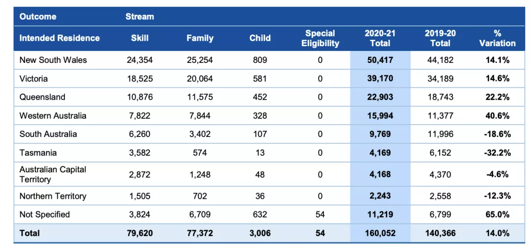 2020-21財年最熱門的移民定居地仍然是新州和維州。