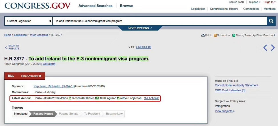 3月9日,美國眾議院通過“允許愛爾蘭加入美國E-3簽證計劃”的法案,接下來,只需參議院正式通過及總統(tǒng)簽字,法案即可正式實施。