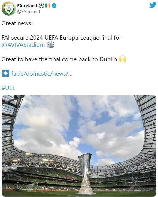 愛爾蘭球迷有福了!2024年歐聯(lián)杯決賽落地愛爾蘭!