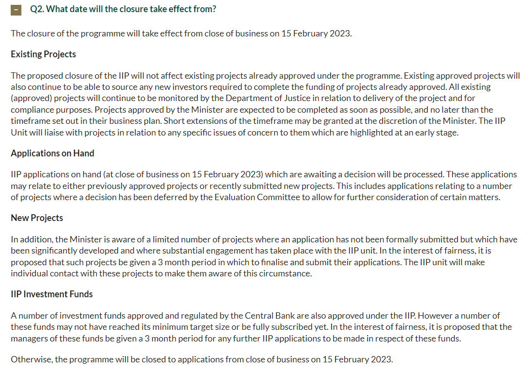 愛爾蘭IIP關停補充說明關鍵信息一覽: