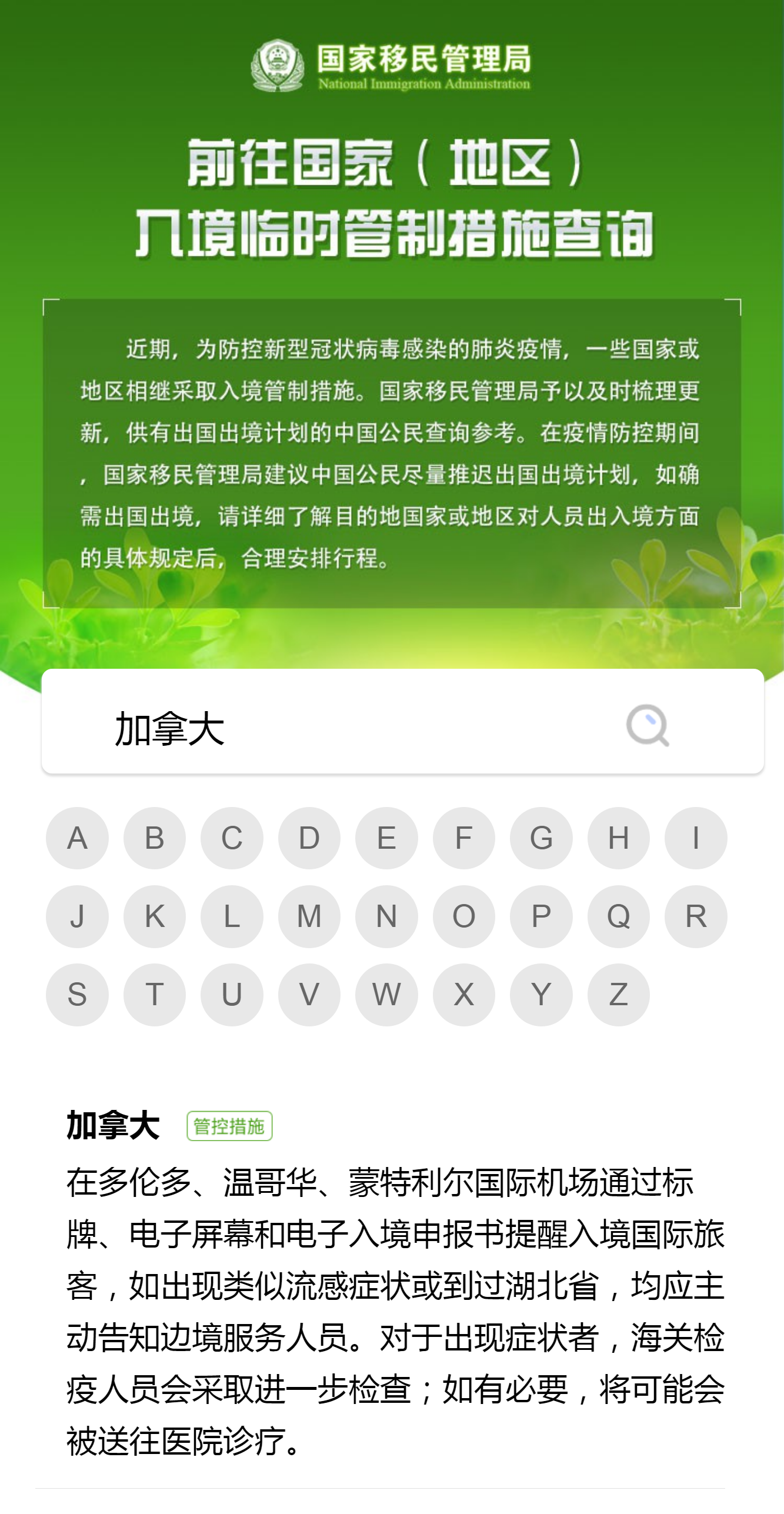 2月7日,國家移民管理局正式上線“出入境信息一鍵通”查詢服務,向社會提供疫情防控期間相關國家和地區采取的臨時入境管制措施和我國口岸通行情況。