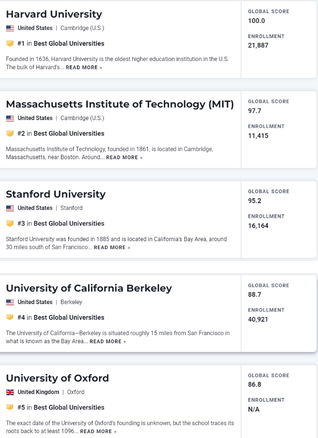 ·哈佛、麻省理工、斯坦福大學穩居前三