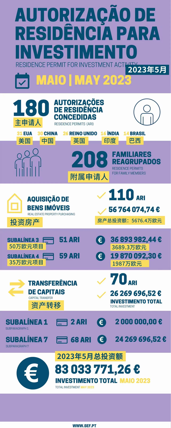 葡萄牙5月黃金簽證數(shù)據(jù)出爐