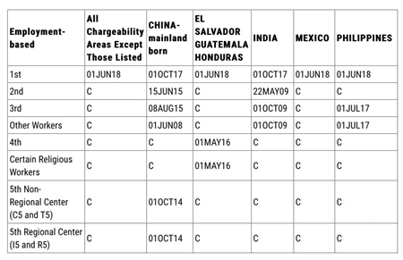 此外,當(dāng)前熱門(mén)的EB-1即將從2018年10月開(kāi)始正式排期,截止日定格在16年6月,也就是說(shuō)EB-1正式開(kāi)始的排期為2年零4個(gè)月,辦理EB-1A或L1/EB-1C的家庭也需要開(kāi)始關(guān)注超齡問(wèn)題。下面來(lái)看下具體的簽證排期表。