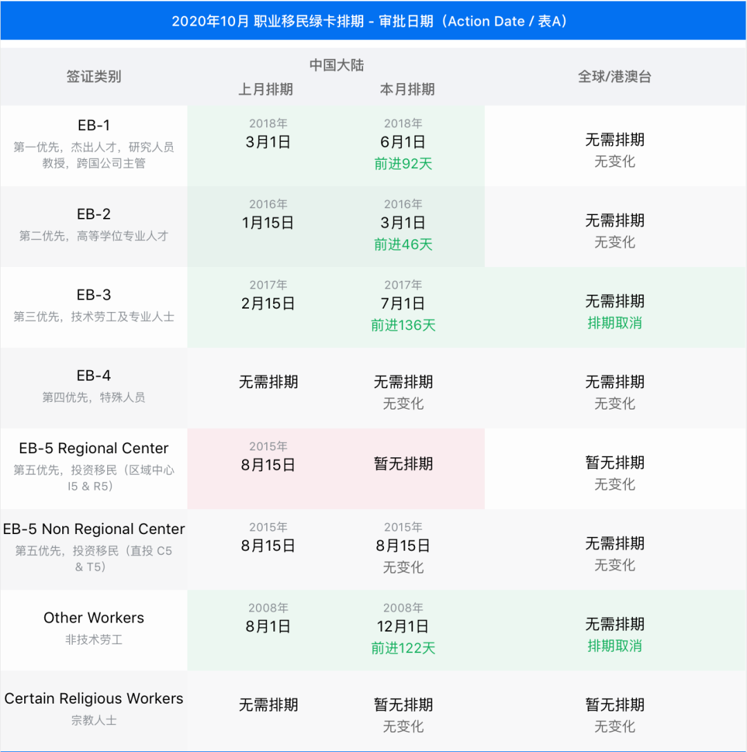 9月24日,美國國務(wù)院簽證辦公室,公布了2020年10月,也就是2021財(cái)年第一個(gè)月的簽證公告牌。
