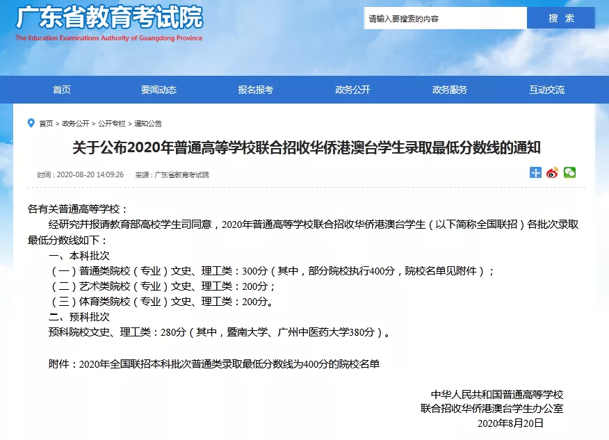 根據(jù)廣東教育考試院發(fā)布的2020年華僑生聯(lián)考錄取最低分數(shù)線的信息,僅200分即可入讀藝術類、體育類院校,400分即可入讀985、211高校,如清華大學、北京大學、復旦大學、中國人民大學等等。