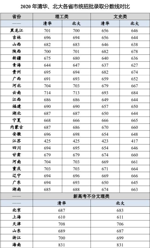 而2020清華、北大各省統(tǒng)招批錄取分數(shù)線,理工類接近700分,文史類約650分,比華僑生錄取分數(shù)線整整高出兩三百分。