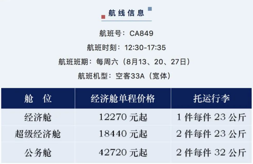 中國國際航空8月8日宣布,將從2022年8月13日起恢復上海浦東-倫敦希斯羅直飛航班,航班號:CA849,航班班期:每周六(8月13、20、27日)。現已可預訂,到11月前每周一班。從英國回國直航航班自9月17日開通,航班號CA850。此外,北京直飛倫敦航班也于8月11日起恢復,到11月前每周一班。