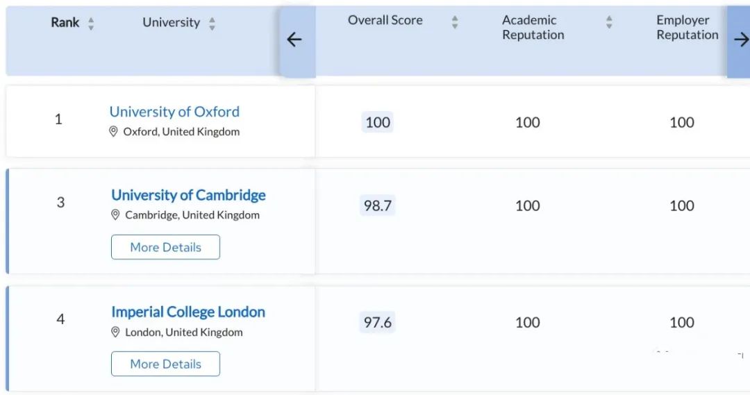 在此次排名中,英國學校繼續表現搶眼,前三名分別是:牛津大學、蘇黎世聯邦理工、劍橋大學,英國占據2席。
